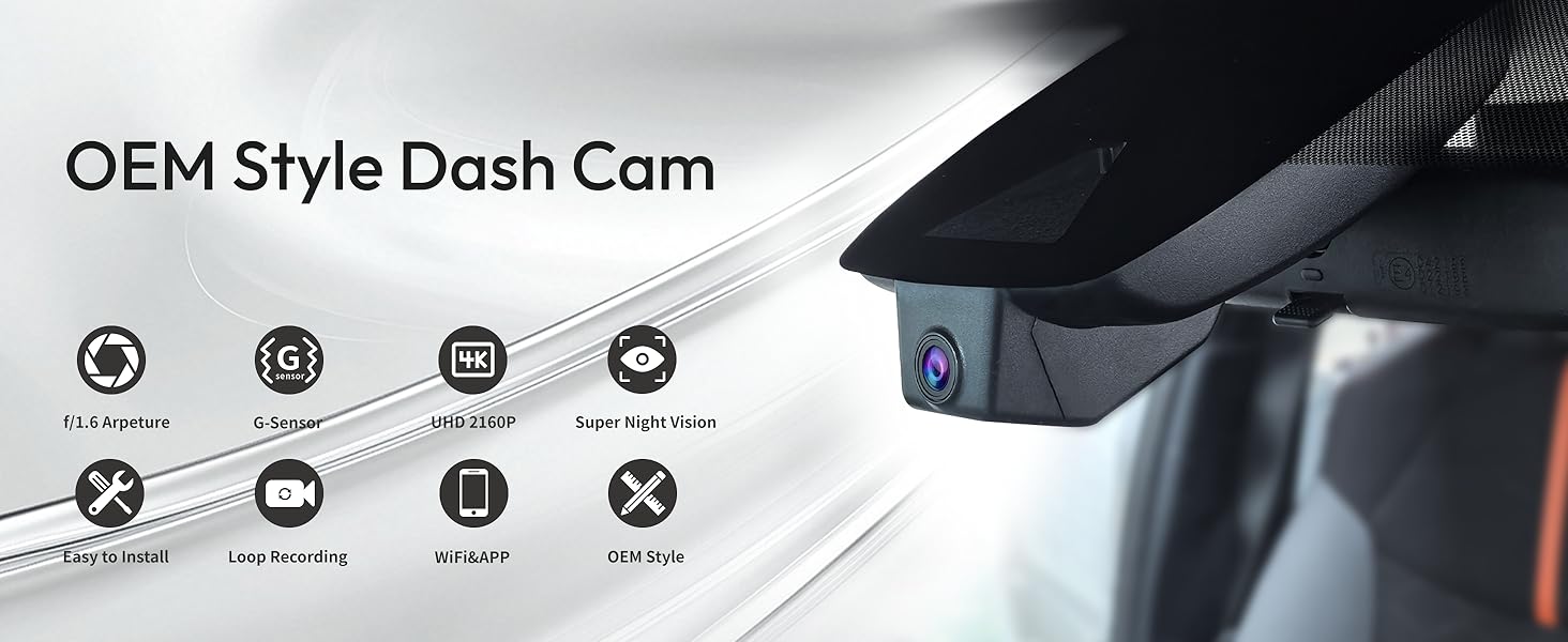 The OEM-style dash cam with a 1:1 restoration of the original rearview mirror back cover shape design, which will not block the driving line of sight.
